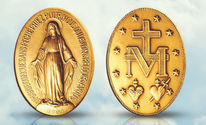 A Medalha Milagrosa, como ficou popularmente conhecida por suas inúmeras graças, conversões e milagres concedidos desde então instituída, foi cunhada a pedido de Nossa Senhora, após suas aparições na capela da Rue do Bac, 140, em Paris, França, à reservada e humilde noviça da ordem das Filhas da Caridade, Catarina Labouré. Esse precioso trabalho se deu sob orientação do confessor da vidente, que só acreditou nela após o profético destronamento do rei da França, no vigente período histórico. Após aprovação e motivação do arcebispo de Paris, a medalhinha foi confeccionada em maior quantidade e, gradativamente, distribuída a partir de 1832, por conta de uma epidemia de cólera que dizimava a região.